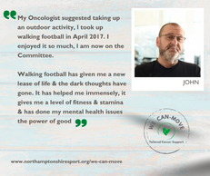 There is lots of evidence that physical activity can help at all stages of a cancer journey, from pre-treatment, to during and after treatment too. Being physically active helps to improve cancer-related fatigue, anxiety and depression, as well as being an important way to protect the heart, lungs and bones. In some cases, being physically active has also been shown to slow the progression of cancer, improve survival and reduce the chance of cancer reoccurring.